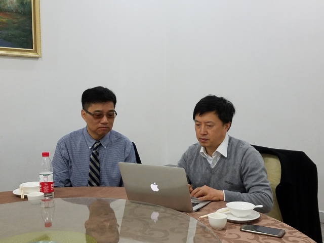 图片说明:刘昌胜院士与张贵根教授探讨生物材料的研究前沿
