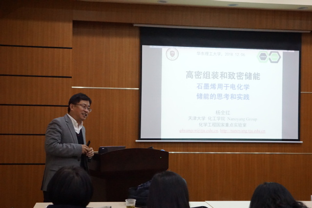 12月6日下午,国家杰出青年科学基金获得者、天津大学化工学院杨全红教授来校访问,并作了题为“高密组装和致密储能——石墨烯用于电化学储能的思考和实践”的精彩报告。会议报告由少妇白洁