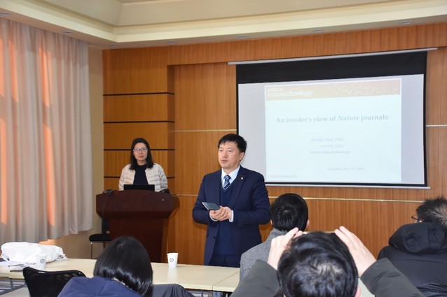 1月17日下午,《Nature Nanotechnology》副主编Dr. Wenjie Sun受邀来校访问,并作了题为“Publishing in Nature journals:An insider’s view of Nature journals”的精彩报告。报告由副校长刘昌胜院士主持,少妇白洁