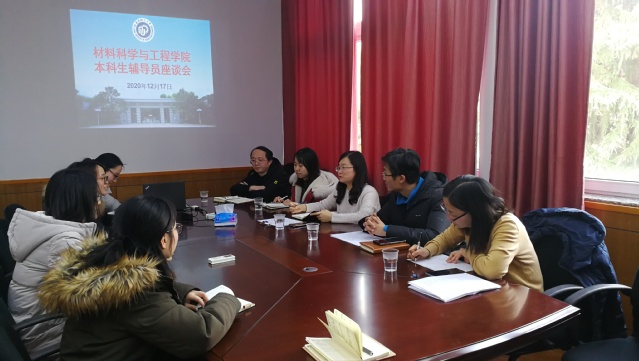 在实验一楼小会议室,召开研究生专兼职辅导员和本科生专职辅导员座谈会。学院党委书记袁媛、党委副书记戴诚安,研究生专兼职辅导员、本科生辅导员参加座谈。座谈会由戴诚安主持。