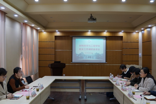 在实验一楼二楼大会议室召开校友工作调研座谈会。校友与发展联络处副处长王芝眉,基金会秘书长助理周霞,少妇白洁