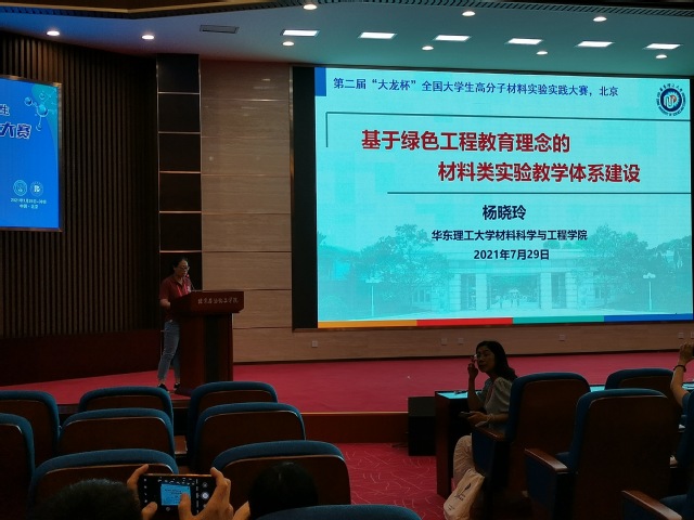 参赛队领队杨晓玲老师作了题为“基于绿色工程教育理念的材料类实验教学体系建设”的报告。