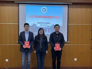18名参赛青年教师有的是刚刚站上讲台,有的已经具有5-6年丰富的教学经验,还有不少是刚刚完成了1-2轮的教学,对教学设计正在进行琢磨提升。他们教授的内容涵盖了从物理、化学到材料的各个方面,教学风格多样,在10分钟的教学展示中呈现了各具特色的精彩课程节段。最后徐彬彬、李宇航老师以其亲切的教态,丰富的教学内容,精致的教学课件获得了一等奖;管梦佳、王立权、甘琪、和唐均坤分别获得二等奖,学院党委书记袁媛为获得一等奖的教师颁发了证书。