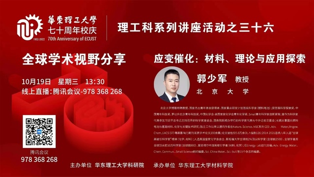邀请国家杰出青年科学基金获得者、北京大学博雅特聘教授郭少军作“应变催化:材料、理论与应用探索”专题报告。