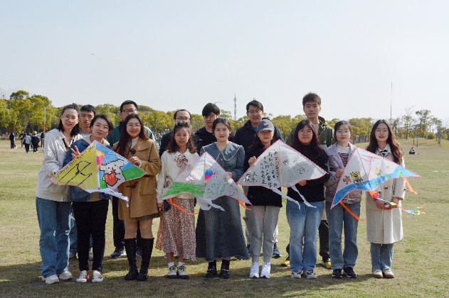 学硕222班在奉贤校区开展了“探春光 湖畔飞纸鸢”主题班级活动,增进同学感情。
