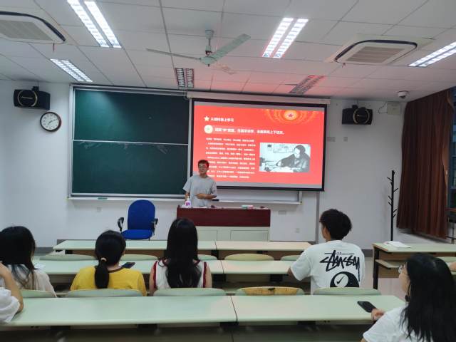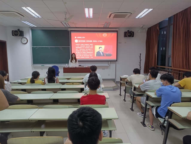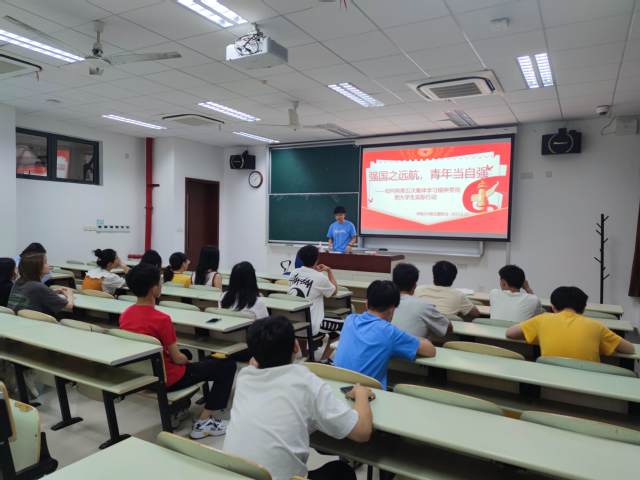 学硕223班在奉贤校区D108开展了“强国之远航,青年当自强——如何将第五次集体学习精神贯彻到大学生实际行动”主题班会,班会由班长张成业主持。