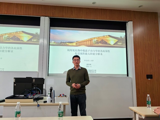 校友、剑桥大学博士后研究员潘林枫博士来访,并作题为“Unveiling Anisotropic Carrier Mobility, Lifetime, and Surface Defects in Oxides for Solar Fuels Generation(揭示氧化物中的各向异性载流子迁移率、寿命和表面缺陷用于太阳能燃料生成)”的学术报告。报告会由杨化桂教授主持,来自少妇白洁