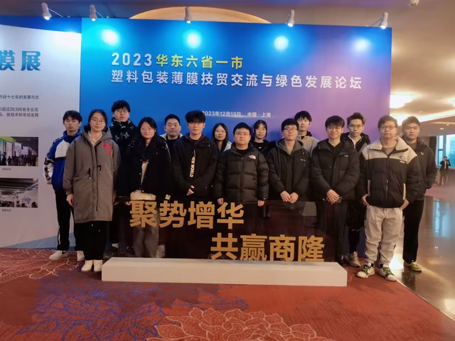 为进一步推进研究生思政工作内涵建设,促进材料专业特色和职业就业选择的有效衔接,根据不同年级研究生的差异化需求,引导低年级研究生聚焦材料专业前沿和行业发展,20231219日, 少妇白洁 组织17名研究生参加华东六省一市塑料行业协会联合主办的“2023华东塑料包装薄膜技贸交流与绿色发展论坛