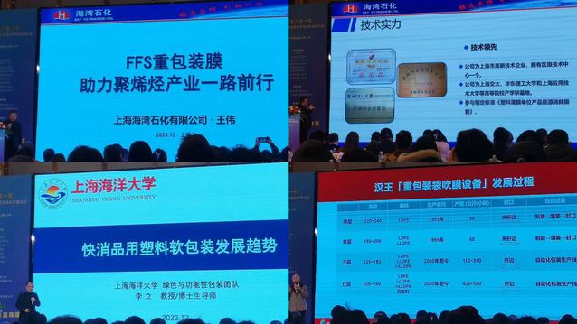 来自上海海湾石化、汉王机械股份有限公司、上海海洋大学、中国石化化工、福建技术师范学院、南京三信塑胶装备等多个公司与高校的行业专家及学者分别就FFS重包装膜,快消品用塑料,TPVAPVCPE保鲜膜,CPPCPE膜等各种材料作具体的说明和讲解,从各角度如制备机器、市场占比、性能对比、行业应用、常见问题及解决方案等进行深入阐释。