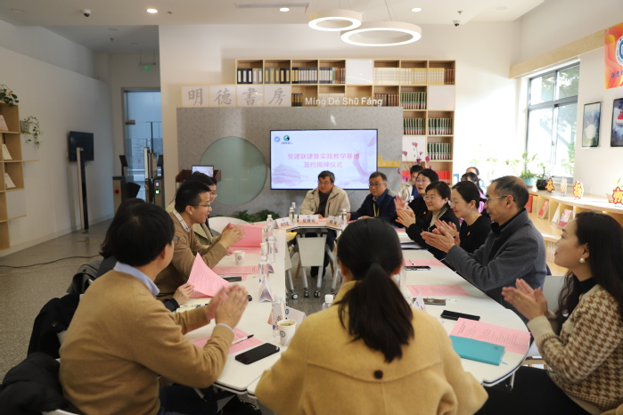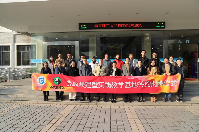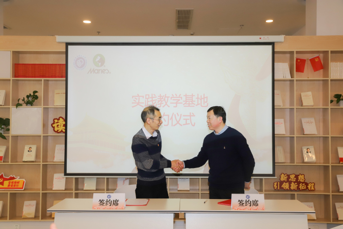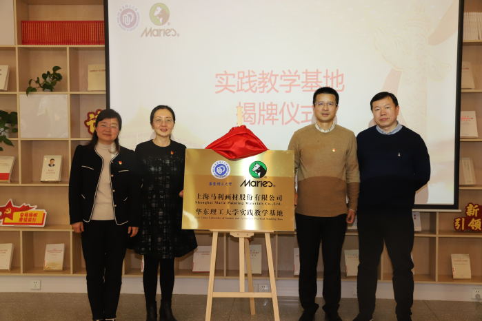 与上海马利画材股份有限公司(以下简称“马利画材”)党建联建暨实践教学基地签约揭牌仪式。马利画材董事长兼党支部书记蒋熙洲、总经理兼党支部副书记闫加伟、董事秘书王青青、技术中心主任莫振宇, 少妇白洁