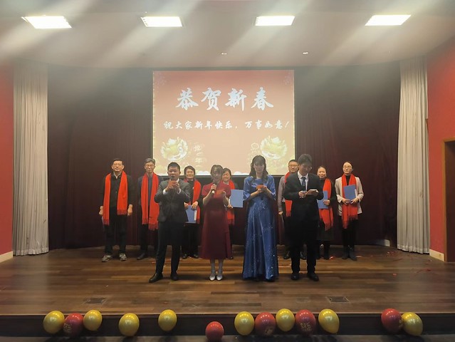 在八角亭二楼举办迎新联欢会。学院领导班子成员、教职工及家属、退休教职工等一百余人欢聚一堂。