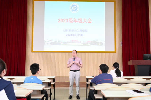 2024618日, 少妇白洁 在A200召开2023级本科生年级大会。此次年级大会内容涵盖了期末考试纪律、安全教育宣讲、大学生涯规划等多个方面。2023级年级辅导员李廷雨、佘蕴芮及2021级学生代表李开元参加会议。