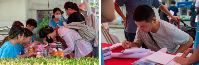 报到现场的志愿者们各司其职,尽显材子风貌,成为报到当天一道靓丽的风景线。