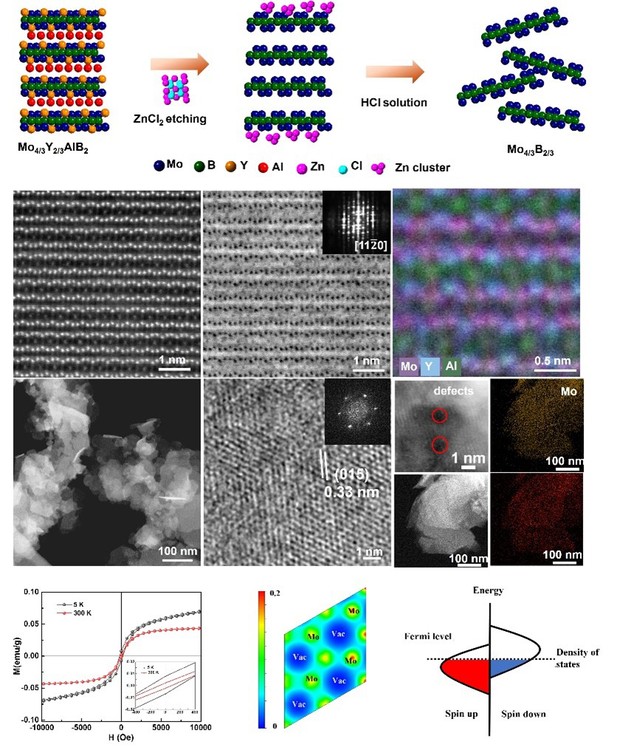 张良柱特聘副研究员与中国科学院大连化学物理研究所吴忠帅研究员、上海大学葛军怡教授、北京航空航天大学孙志梅教授、德国工程院院士冯新亮教授等在二维硼钼烯纳米片室温铁磁性研究取得新进展,该工作以“Vacancies Engineering in Molybdenum Boride MBene Nanosheets to Activate Room-Temperature Ferromagnetism”为题发表在《Advanced Materials》。