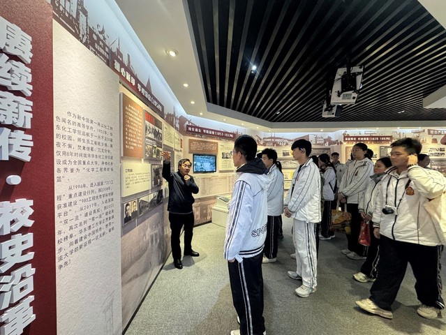 深厚历史底蕴和辉煌成就的校史馆。档案馆馆长王惠文为位育中学的师生讲解校史,师生们沉浸在校史馆丰富的史料和展品中,聆听着学校一路走来的发展历程、取得的卓越成就,深切感受到了华理浓厚的文化积淀和独特的精神传承。