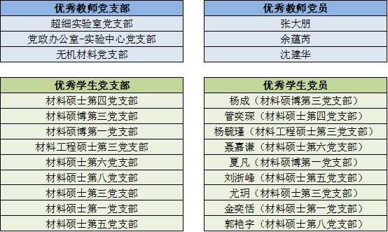 学院优秀党支部和优秀共产党员评选结果