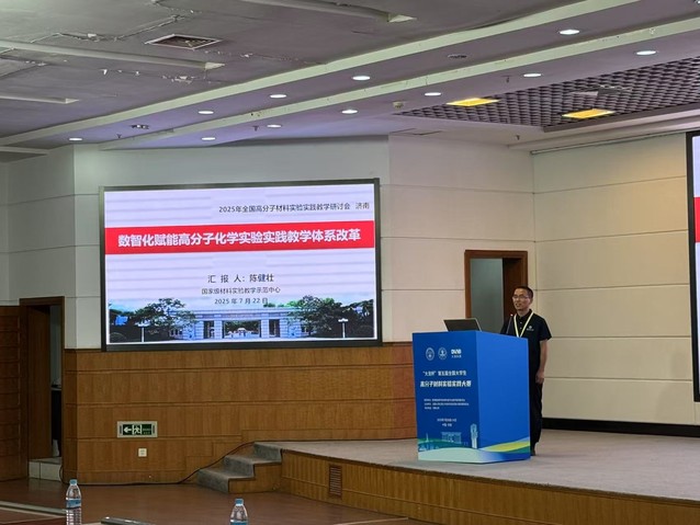 参赛指导教师陈健壮老师作了题为“数智化赋能高分子化学实验实践教学体系改革”的报告,还与兄弟院校的老师们就高分子材料实验实践教学进行了广泛而深入的交流。