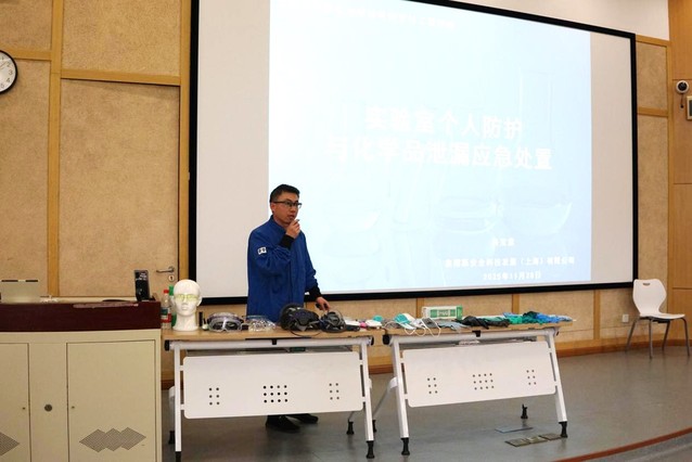 在七大举办实验室个人安全防护及化学品泄漏应急处置培训。本次培训特邀3M公司个人安全防护产品部专家马宝意主讲,少妇白洁